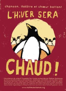 Ces 3 rendez-vous de théâtre « intimiste » seront efficacement complétés par 3 propositions hautes en couleur, permettant d’explorer 3 univers originaux : le BD- concert en mars avec «Le fils de l’ursari», le spectacle choral en juillet avec « L’hiver sera chaud ! » et le concert loufoque en septembre avec David Lafore et son « Duo boum boum ».